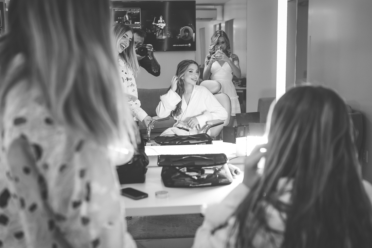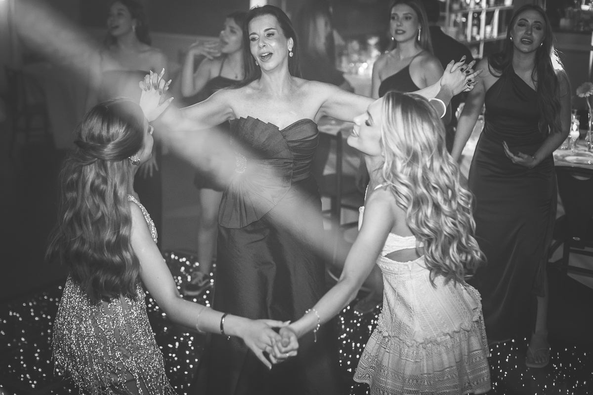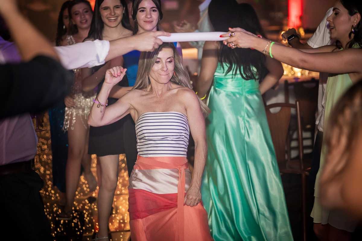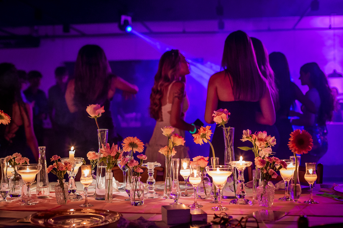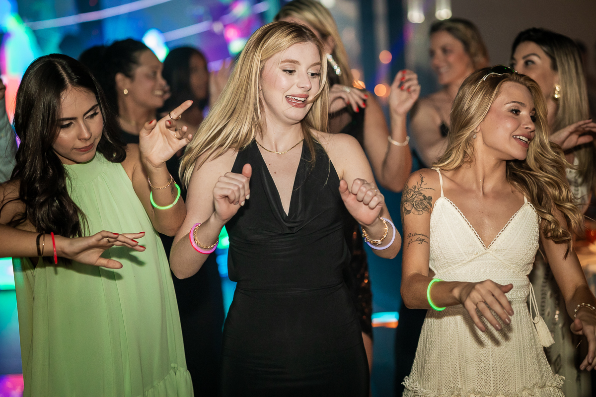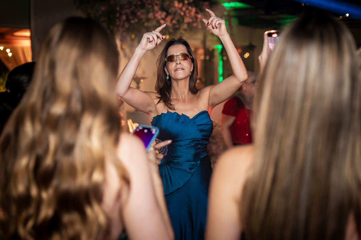 Meu olhar buscava transformar sentimento em imagem. As fotografias clássicas, que não podem faltar em um álbum de debutante, se misturavam com momentos espontâneos: passos animados na pista de dança, risadas sinceras com as amigas, olhares tímidos e cheios de expectativa.