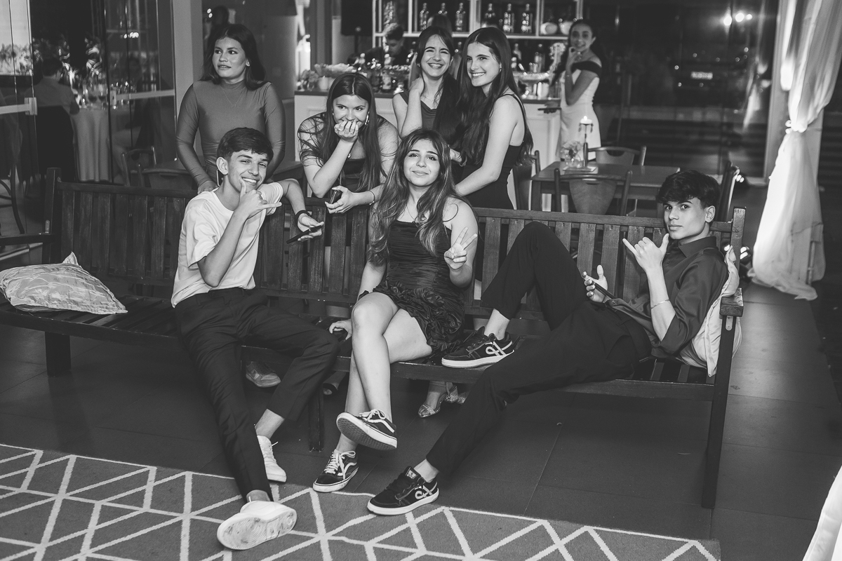 Também foi impossível não se emocionar com a família, acolhedora, presente e verdadeira. A conexão entre eles aparecia nos detalhes: nos abraços demorados, nos sorrisos cúmplices, nos olhares cheios de orgulho. Fotografar essa noite foi eternizar amor, união e sonhos — exatamente o que faz a vida ser tão extraordinária.
