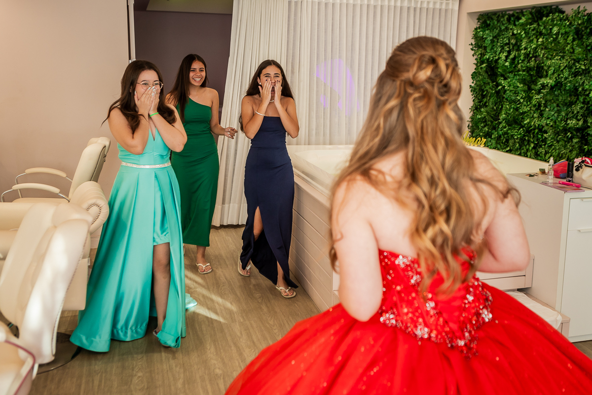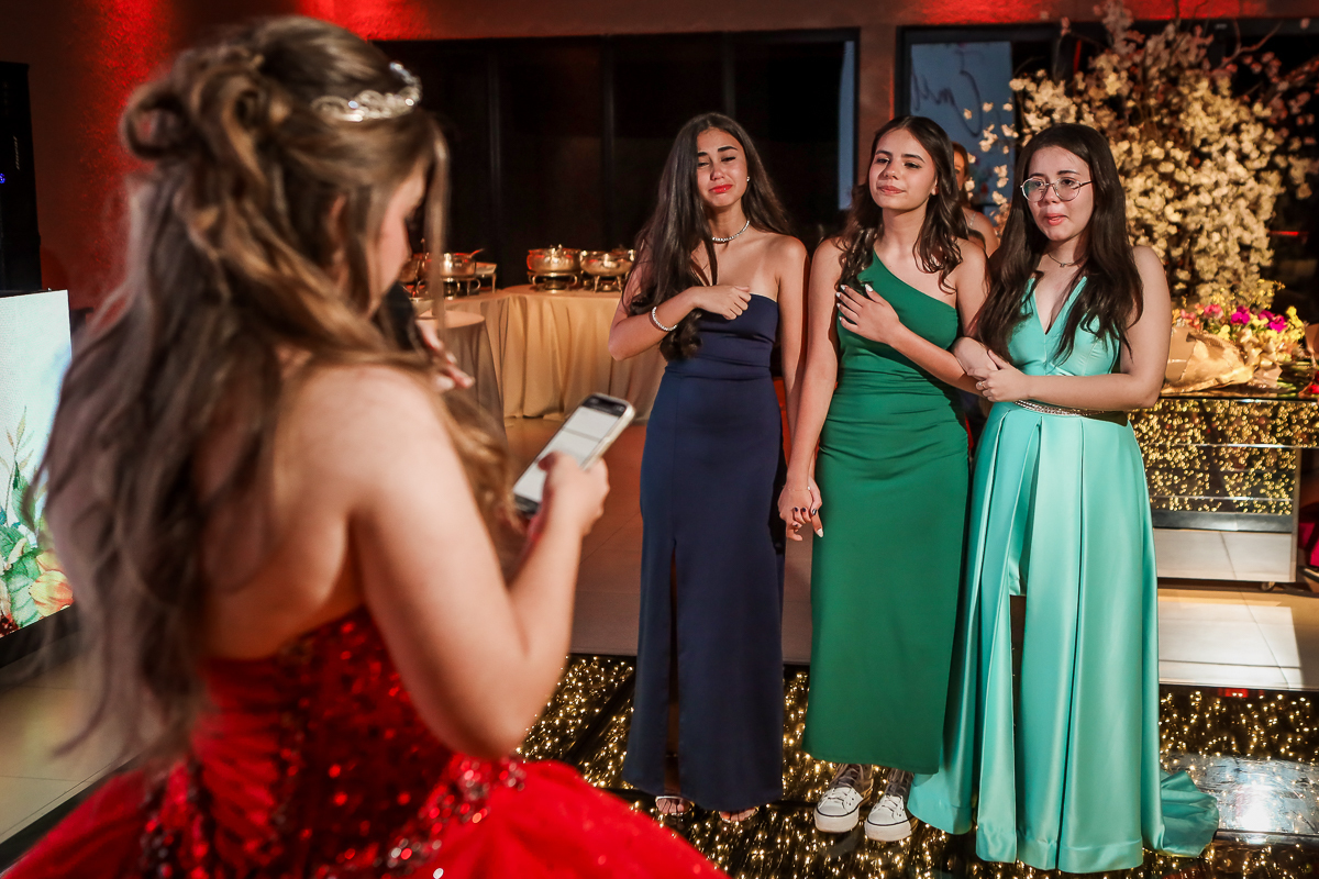 Quando registro uma festa de debutante, meu foco ultrapassa a estética visual. Antes de planejar poses, observo os laços. Noto os movimentos. Sinto a energia. Compreendo a narrativa por trás da união.