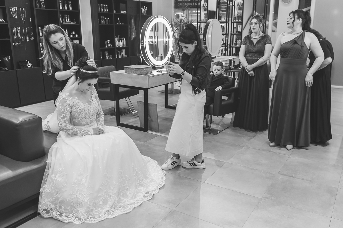 O dia começou com preparativos cheios de significado: maquiagem, flores, detalhes do vestido e, claro, aquele instante único entre mãe e filha antes de seguir para a igreja. Enquanto isso, o noivo e os padrinhos se arrumavam, riam, relembravam histórias e brindavam à amizade, um clima leve e afetuoso que definiu o tom do casamento em Garibaldi RS.