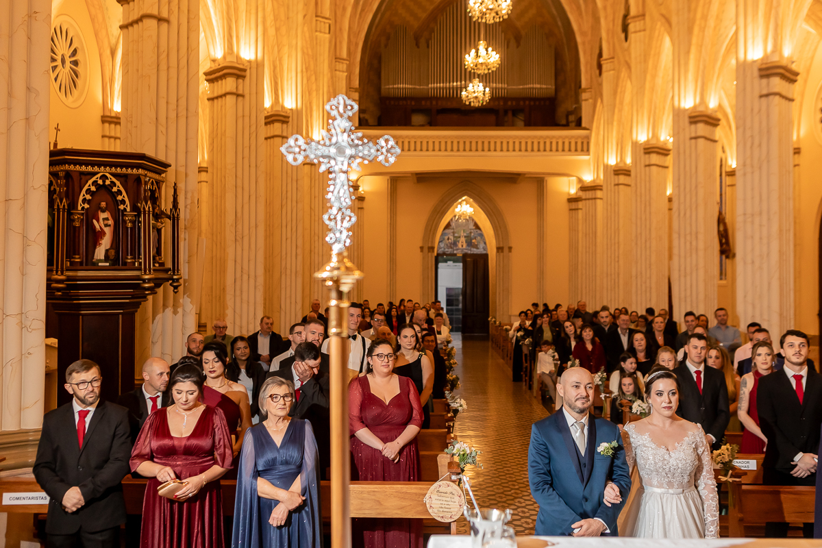 Depois da bênção, da troca de alianças e do beijo tão aguardado, o casal saiu da igreja em meio a pétalas brancas e aplausos. Em seguida, a Igreja São Pedro recebeu todos com um clima acolhedor para a festa: jantar, discursos, a primeira dança, o buquê e muitos abraços. Foi ali que o casamento na Igreja São Pedro em Garibaldi RS ganhou ritmo de celebração e memórias eternas.