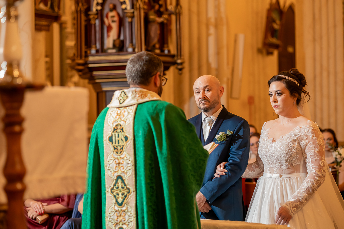 Cada sorriso, cada lágrima discreta, cada mão que se encontrava no corredor da igreja carregava um peso emocional enorme. Minha missão era simples e gigante ao mesmo tempo: transformar esse casamento na Igreja São Pedro em Garibaldi RS em lembranças palpáveis, para que eles revivam tudo sempre que abrirem o álbum.