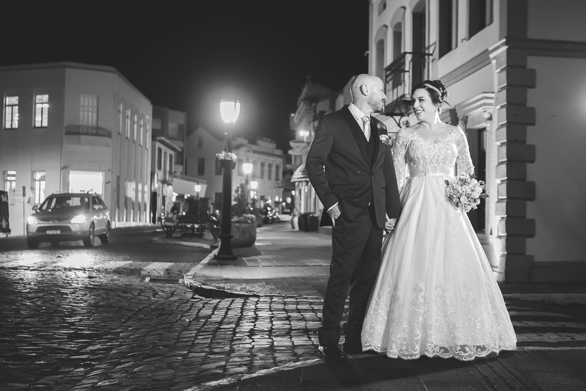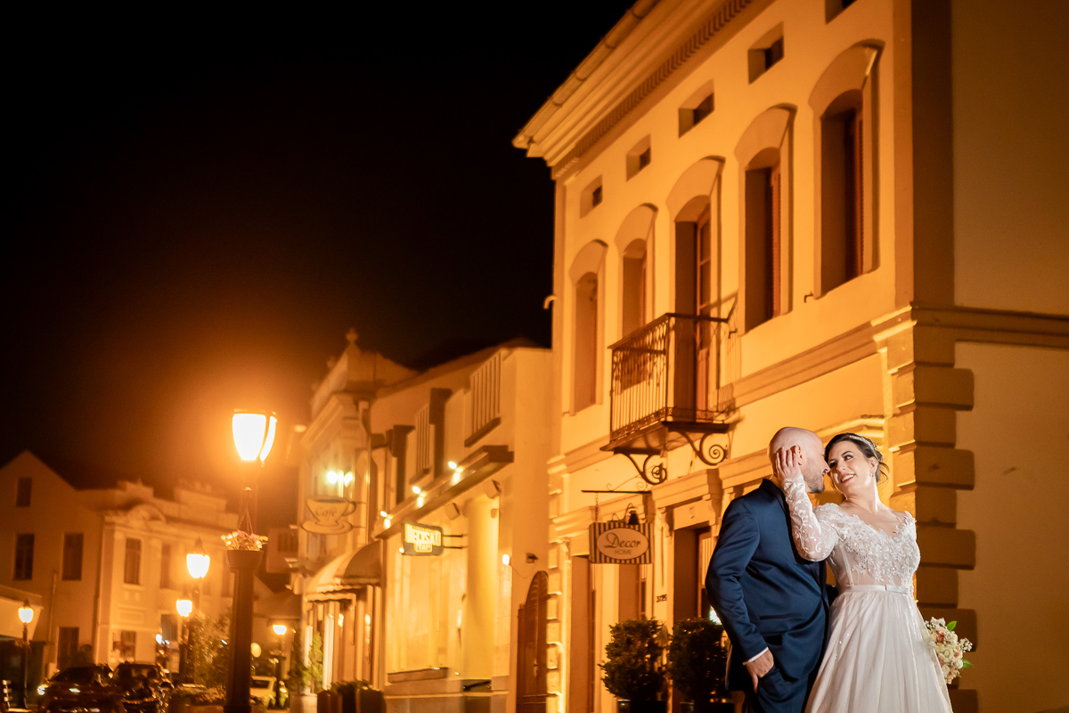 Depois, no ensaio pós-cerimônia, aproveitei a tranquilidade do momento para registrar a leveza do casal recén-casado. Essas imagens completam o casamento nas ruas do centro de Garibaldi RS, revelando a intimidade e a alegria de quem acabou de dizer “sim”.