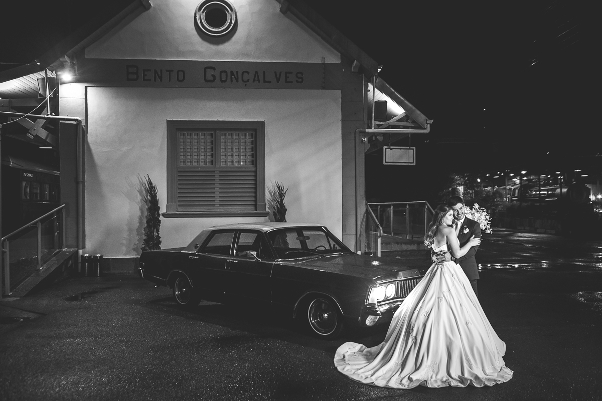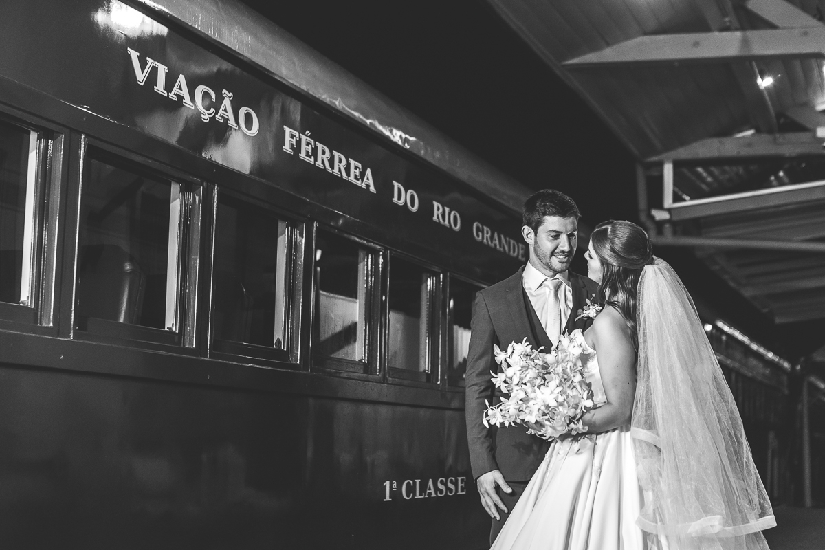 Após a cerimônia, aproveitamos a tranquilidade do ensaio pós-casamento para registrar a leveza do casal recém casado. As fotos na Estação de trem de Bento Gonçalves RS completaram a narrativa do dia, revelando a alegria e a intimidade de quem acabou de dizer “sim”.